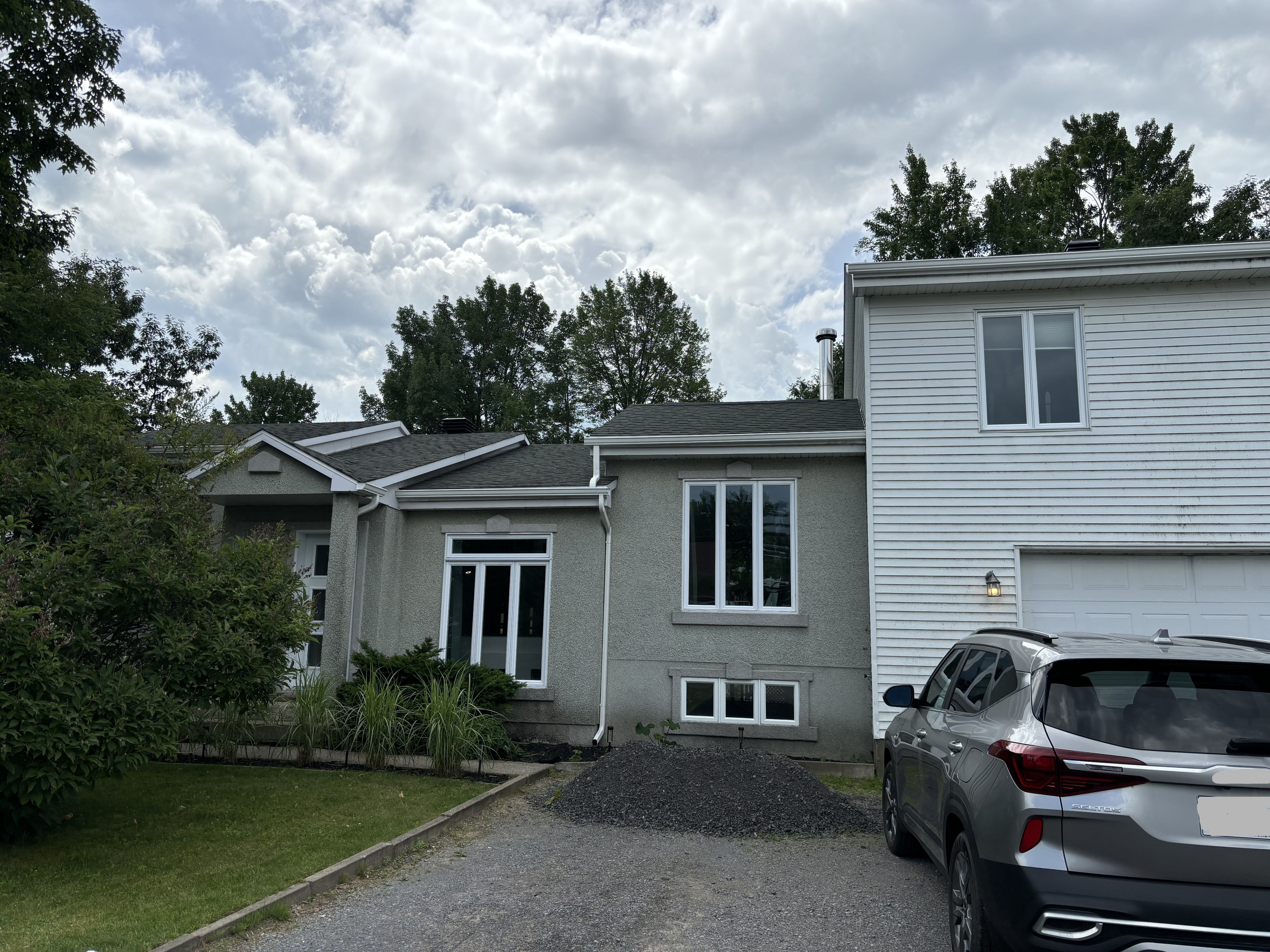 Ce projet à Lavaltrie illustre comment la modélisation 3D permet de visualiser avec précision la transformation d'une résidence avant le début des travaux. Chaque détail de la façade a été réfléchi pour créer un résultat cohérent et distinctif.